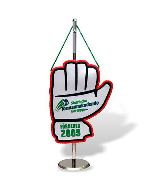 - Formen: Dreieck, Fünfeck, Fahne, Wappen, U-Form, individuelle Formen wie z. B. Firmen- / Vereinslogo